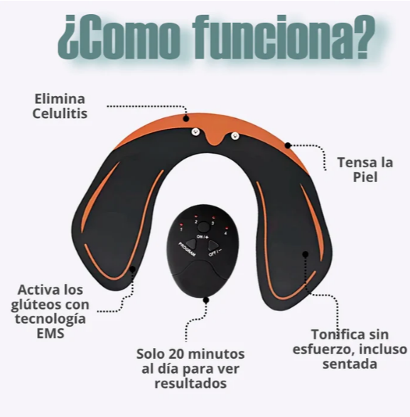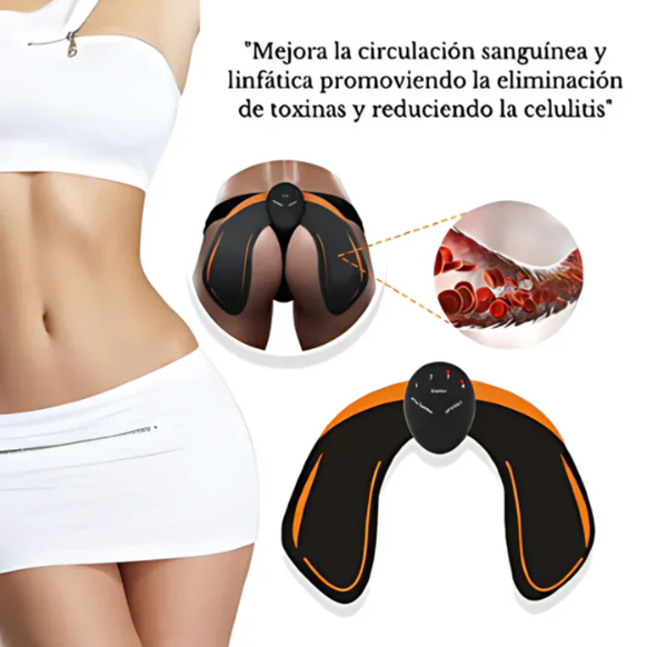 El BootyFit Pro utiliza estimulación eléctrica muscular (EMS) para activar los glúteos de forma natural, mejorando la circulación, eliminando toxinas y reduciendo la celulitis. 💪